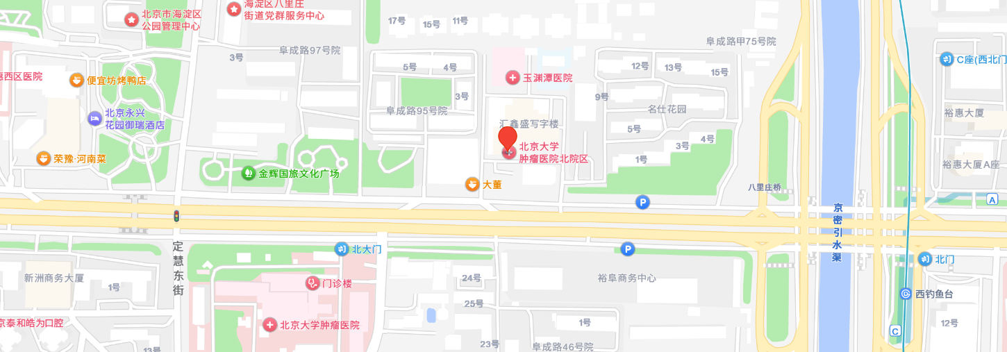 路线:地铁10号线西钓鱼台站C口出,向北步行50米至阜成路,转向西步行800米,抵达门诊。