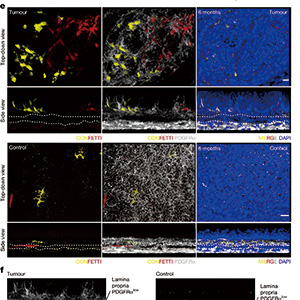 为验证二者存在因果关系,研究者将从未接触过致癌物的健康上皮细胞放在肿瘤基质上培养,发现健康上皮竟获得了肿瘤样形态并高度增殖。这些接触过肿瘤基质的健康细胞,在移植到体内时也更容易实现长期植入,提示基质重塑是新生肿瘤生存的原因而非结果。后续研究明确PDGFRα低表达的成纤维细胞是基质重塑的主体。