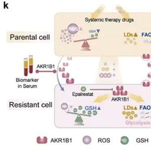 研究证实,依帕司他(Epalrestat,一种临床上获批的AKR1B1抑制剂,常用于治疗糖尿病周围神经病变)与标准疗法(仑伐替尼)联合使用时,显著减轻肝细胞癌的仑伐替尼耐药性。