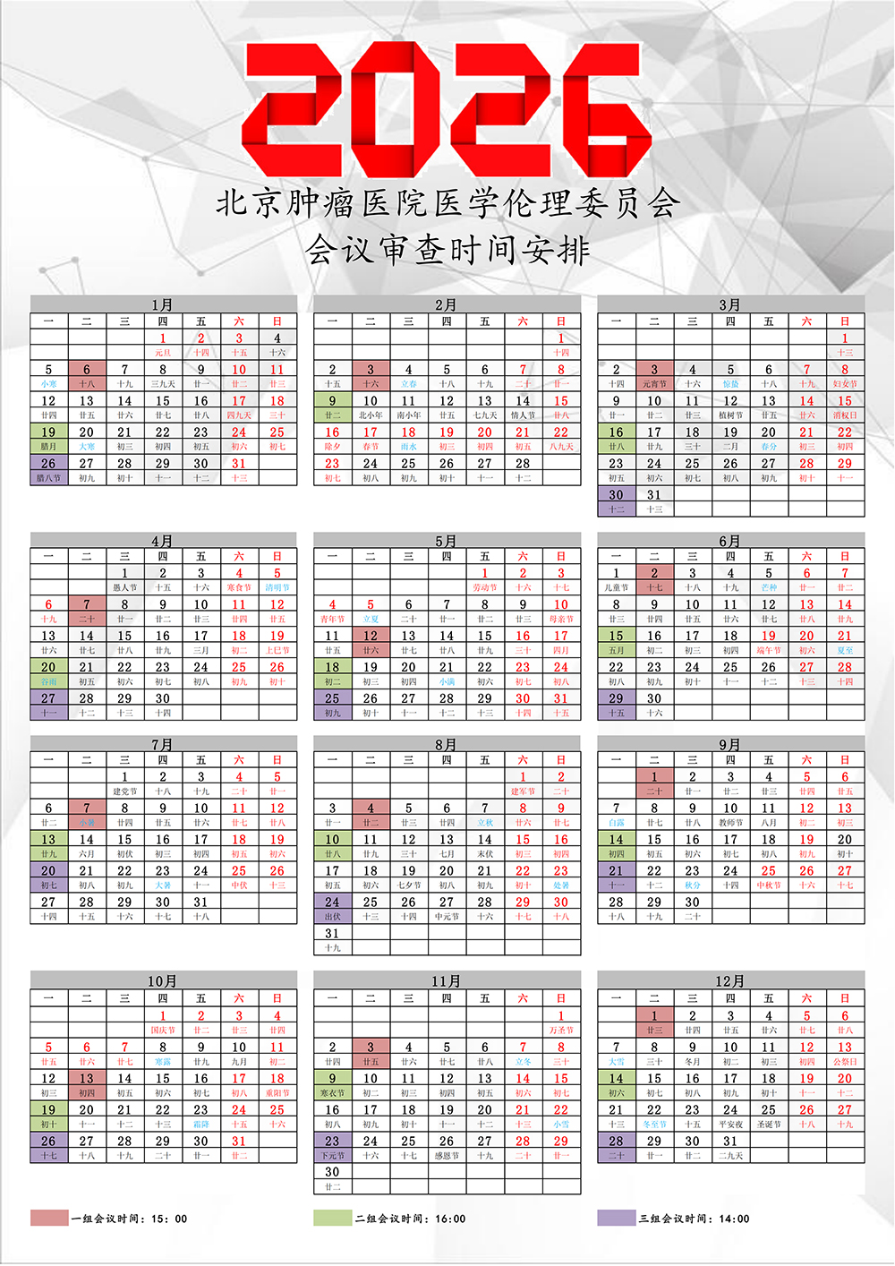 2026北京肿瘤医院医学伦理委员会年会议审查时间安排