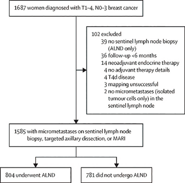 美国纪念斯隆-凯特琳癌症中心Montagna等报告的国际回顾性队列研究(OPBC-07/microNAC)的结果,并不支持对所有接受区域淋巴结放疗、前哨淋巴结活检显示ypN1mi期患者进行腋窝淋巴结清扫术(ALND);然而,在考虑省略ALND时,应考虑到肿瘤生物学特征。(Lancet Oncol. 2026; 27: 57-67.)